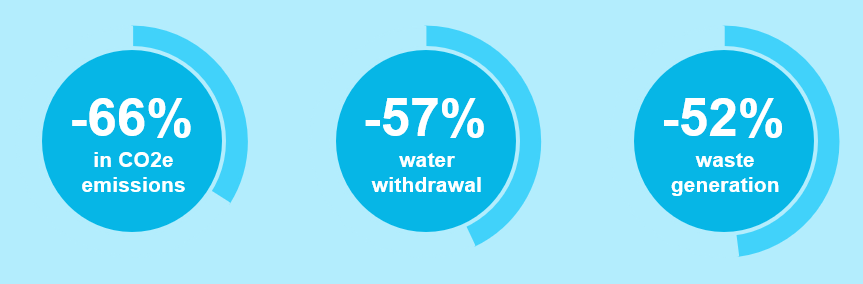 The Osmosis Resource Efficiency Signal generates a significant reduction in the environmental footprint of our Fossil Fuel Transition Strategy relative to the MSCI World benchmark (as at end March 2025):